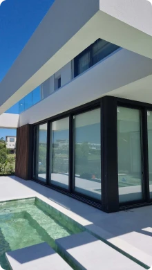 Grandes ventanales de deslizamiento suave y hermeticidad total que integran el exterior a tu confort interior.